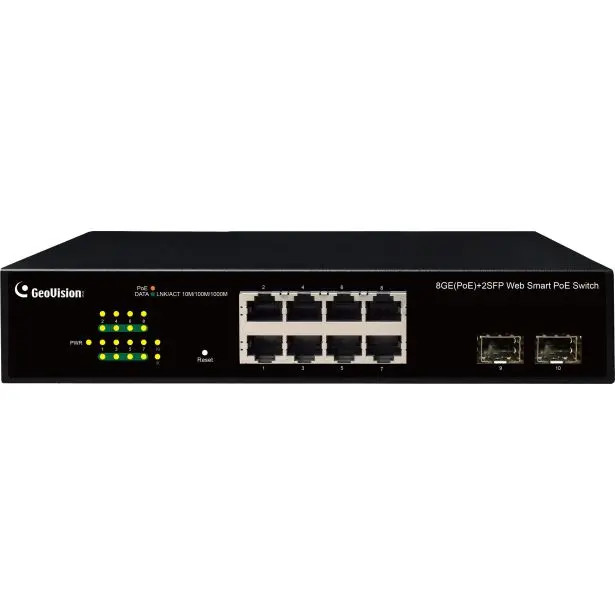 GV-APOE0810 is a 10-Port 10/100/1000Mbps unmanaged PoE Switch with 8 PSE/PoE ports and 2 uplink ports. The switch supports IEEE 802.3at Power over Ethernet standard, up to 32W per port, for up to 8 GV-IP devices and a maximum power consumption of 125W. In addition to not requiring special network cables for connecting your powered devices (PD), such as IP cameras, it also allows power supply over cables of up to 250m (820′) in length, at 10Mbps. The switch is designed for small or medium network environment to strengthen its network connection and efficiency. It also gives you the option of VLAN mode to isolate each of the PoE ports for an enhanced forwarding rate of time.